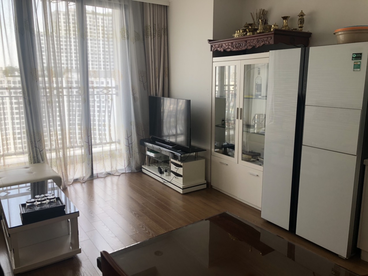 Căn hộ vẫn giữ nguyên thiết kế ban đầu với 1 phòng ngủ đầy đủ đồ đạc, phòng khách, bếp và nhà vệ sinh. Chủ cũ để lại đồ dùng còn đẹp và mới.